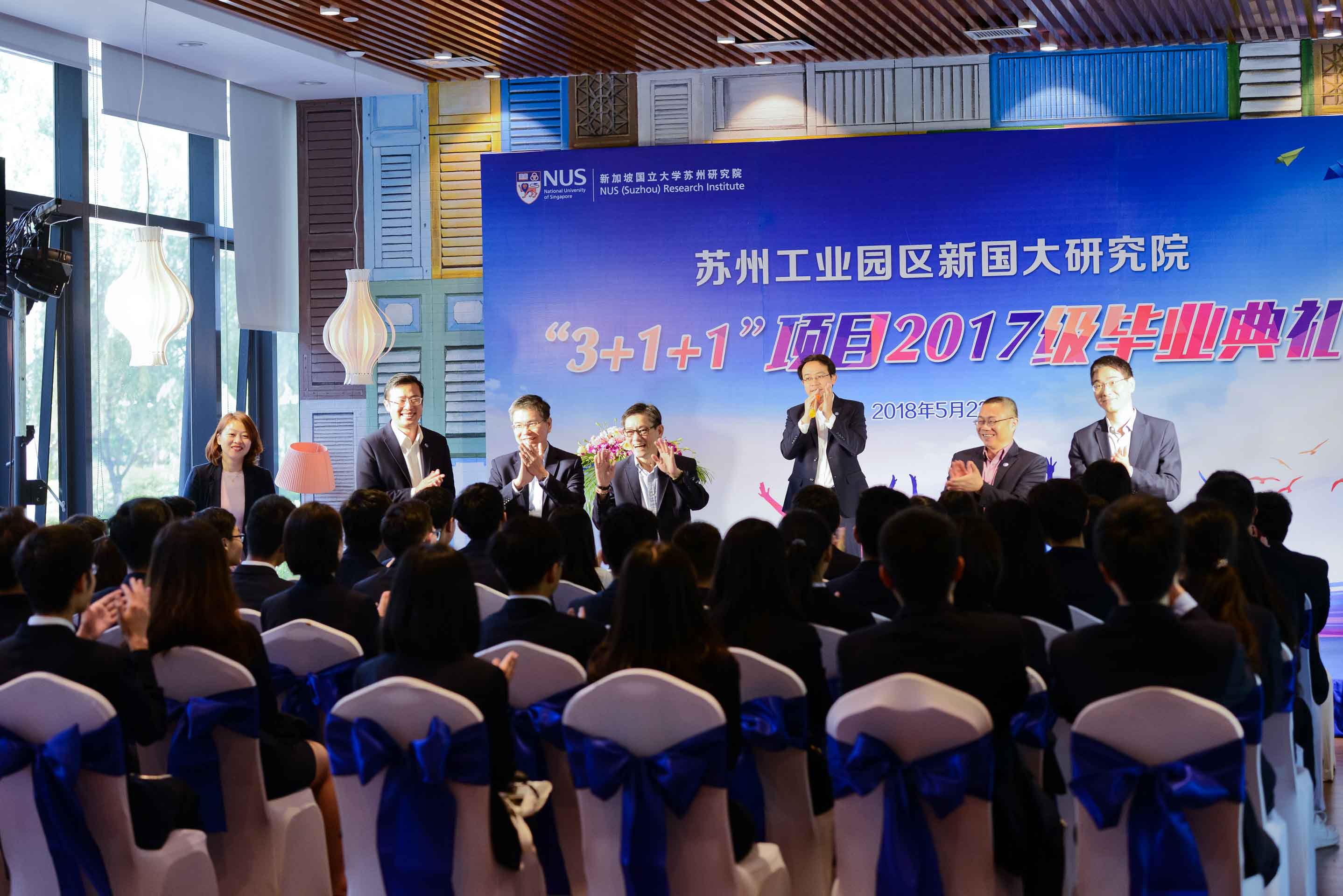 2018年5月23日上午,新国大苏研院“3+1+1”项目2017级毕业典礼在新国大苏研院成功举行,新国大苏研院常务副院长刘小敖,副院长周志颖、谢贤宁、许国良,新国大电机工程系教授郭永新,新国大苏研院助理院长张鹏、徐晴吉等出席典礼。